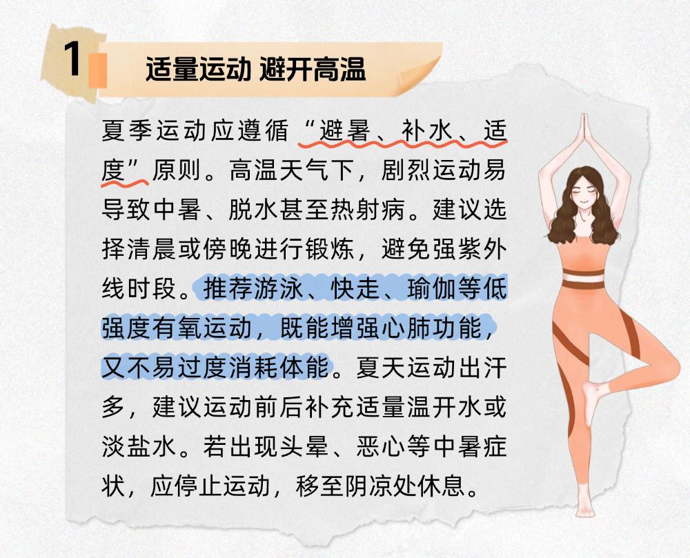 中国疾病预防控制中心营养与健康所助理研究员张建芬,送上这份“夏日生活方式指南”,从科学运动、饮食调理到防暑防晒,简单实用的妙招助你轻松应对高温挑战,元气满满过夏天!