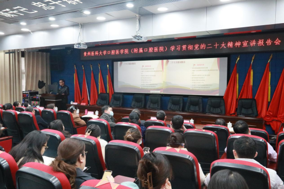 在行政楼五楼学术报告厅举行学习贯彻党的二十大精神宣讲报告会,院党委副书记、院长马洪作专题宣讲,党委书记张军梅主持宣讲,党政领导班子成员出席会议,全院副科级以上干部、教职医护员工代表、各民主党派及党外教职工代表和全体党员参会学习。