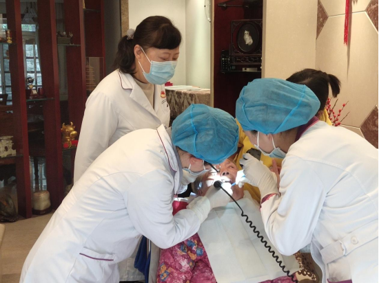 接到求助后,医院立即回应并安排部署。上午9时,院党委书记张军梅带领口腔修复种植科高层次人才(博士)贾源源及护理人员吴红艳,携带诊疗箱驱车前往患者家中为其诊疗。