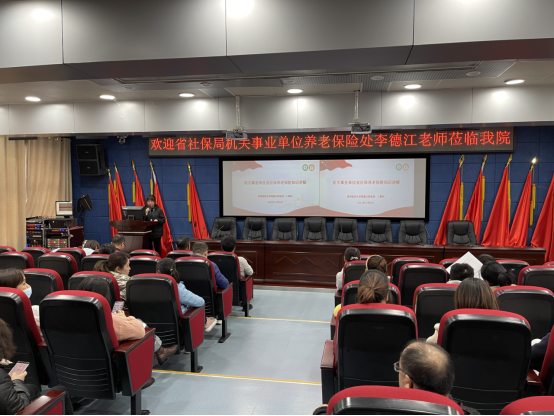 在行政楼五楼学术报告厅开展“我为群众办实事,政策普及‘零距离’”主题活动,邀请贵州省社会保险事业局机关事业单位养老保险处一级主任科员李德江、贵州医科大学人事处张常喜讲解养老保险缴纳及退休金核定相关政策。院党委副书记、院长马洪,党委副书记何雨羲出席会议,全院编制人员参会学习。人事科副科长齐琦主持会议。