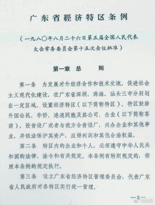 1980年8月26日,第五届全国人大常委会第十五次会议批准《广东省经济特区条例》。