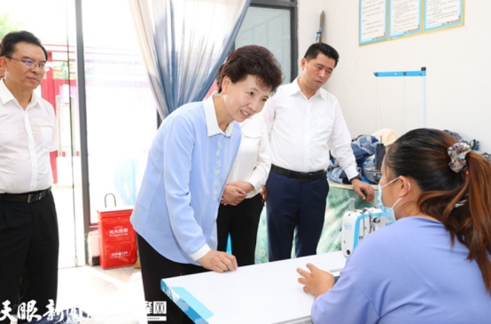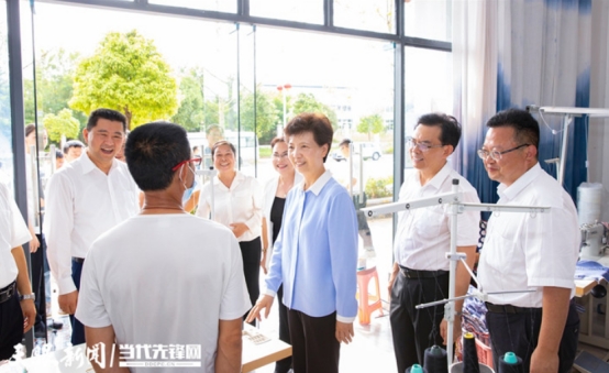 谌贻琴在镇宁自治县银城趣事易地扶贫搬迁点民族文化街区考察扶贫车间