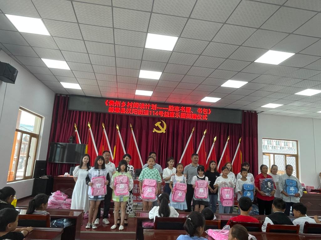 践行党“我为群众办实事”的重要举措。在贵州省励志助学中心的协助下,口腔医(学)院捐资2.5万的“励志书屋”顺利完成筹款并在赫章汉阳街道投入使用,希望能为赫章县的孩子们提供更多高品质课外读物,让孩子获取更多有用的信息和知识,并向汉阳街道授“励志书屋”牌匾。随后,贵州省励志助学中心协同口腔医(学)院党委共同为汉阳街道“励志书屋”捐赠了价值45000余元的儿童文学、世界名著、爱国主义教育等课外图书1000册及书包100个,也为他们送去了口院人和社会爱心人士的关心和关爱。