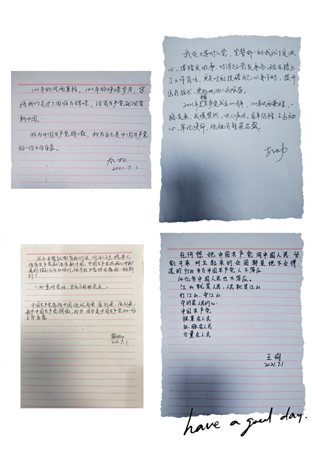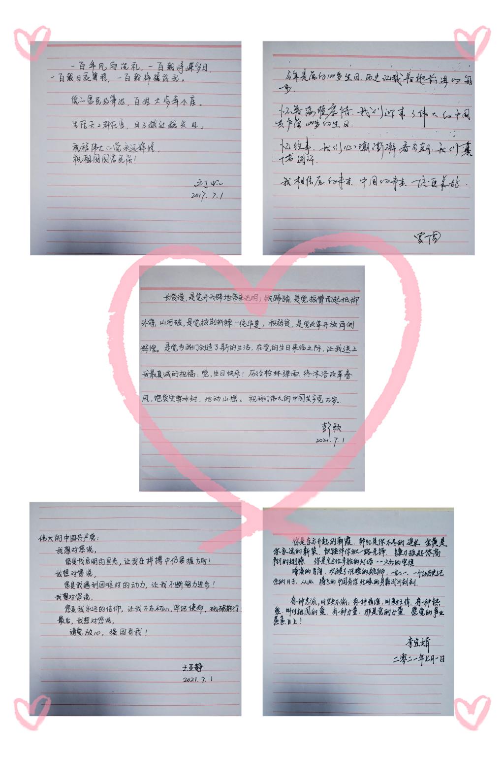在建党百年之际,为深入推进党史学习教育,展现党员风采,教工六(牙周黏膜)支部于7月2日在牙周黏膜科办公室组织开展“献礼建党百年,对党写句心里话”主题党日活动。