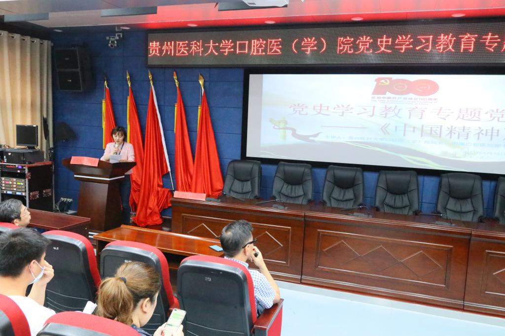 为深入开展党史学习教育,切实提高党员干部守初心、担使命的思想自觉和行动自觉,6月30日下午,口腔医(学)院在行政楼五楼学术报告厅组织开展党史学习教育专题党课。党委副书记、院长马洪以《中国精神》为题,为全院党员和入党积极分子讲授党课。院党政领导及党委委员出席;各临床、医技科室、各行政部门负责人,教职工党员,各党支部书记及委员会成员,入党积极分子参会学习。党委副书记何雨羲主持党课。
