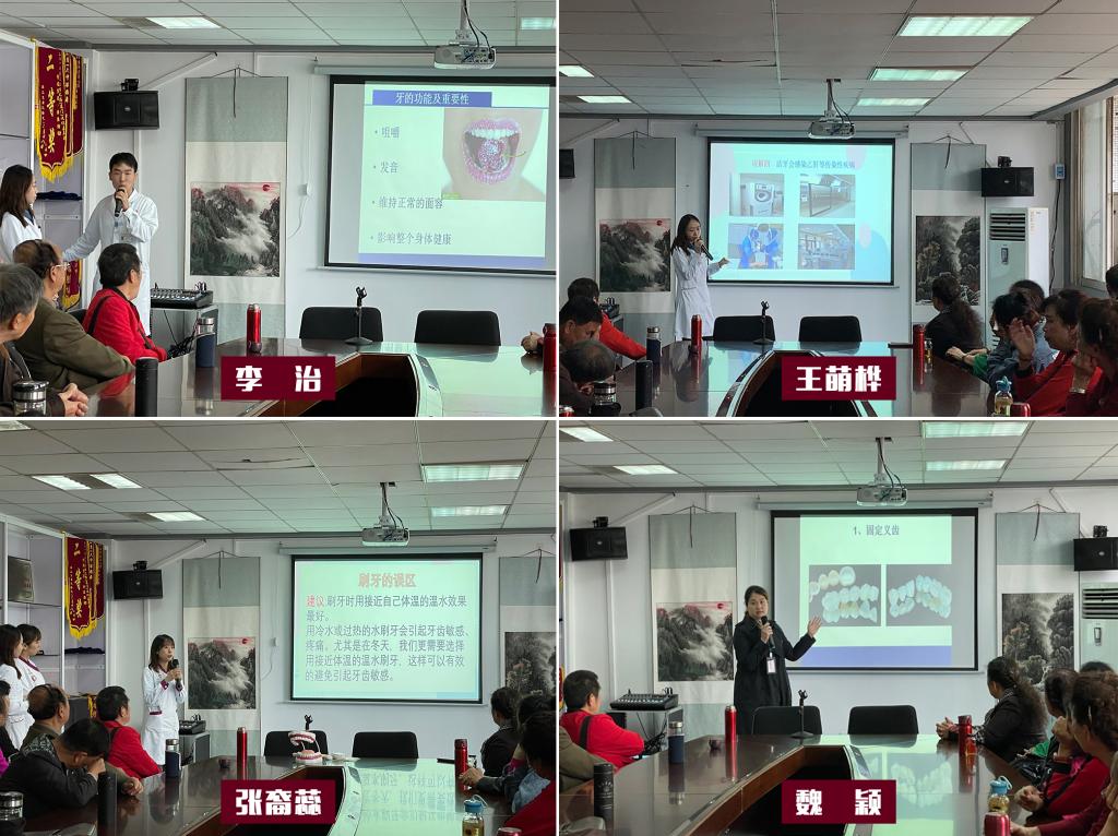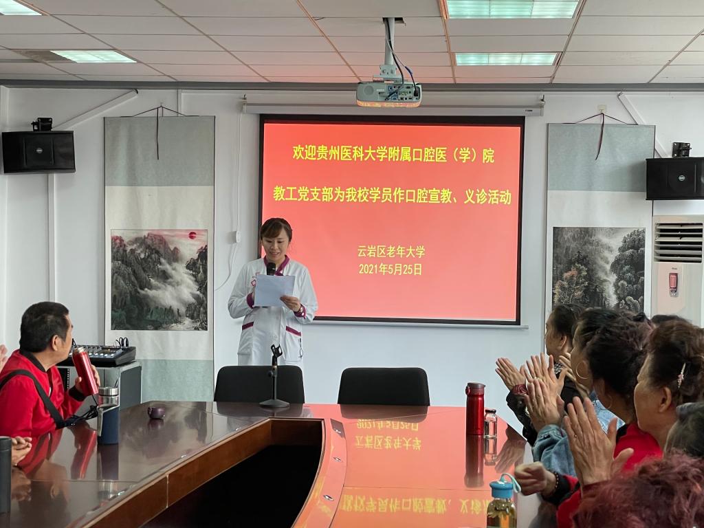 教工七(综合急诊)支部书记刘洪静、教工九(行政)支部书记魏颖带领两个支部党员同志在云岩区老年大学开展了“进老年大学,送口腔健康”主题党日活动。