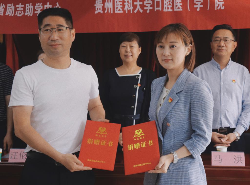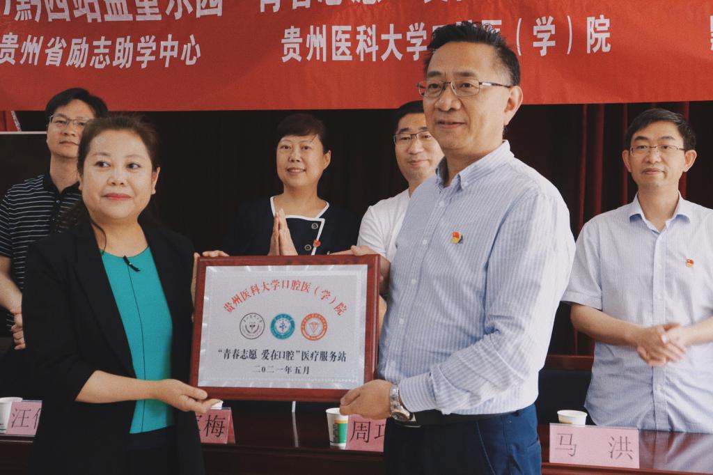随后,口腔医(学)院党委副书记、院长马洪为黔西站益童乐园授“贵州医科大学口腔医(学)院‘青春志愿 爱在口腔’医疗服务站”牌,汪伦碧主席接牌;口腔医(学)院党委书记张军梅为黔西站益童乐园授“贵州医科大学口腔医(学)院大学生社会实践基地”牌,卢春主任接牌;省励志助学秘书长周巧明为口腔医(学)院颁发爱心共建单位证书,口腔医(学)院党委副书记何雨羲接证书。