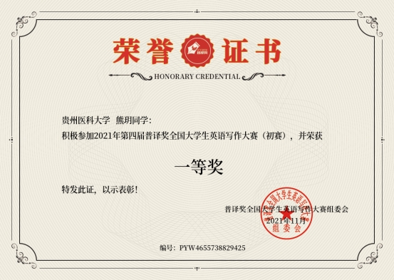 在教学工作中,熊玥对学生认真负责,专业授课严谨认真,严格遵守临床规范以及技术操作,创新活跃的带教方式得到了实习同学的喜欢。工作学习之余,她会积极参加各类专业学习、继续教育、比赛,努力展示自我,提升自我。2021年与科室同事一同参加了第五届“紫荆杯”全国口腔种植思辩赛,并于同年荣获第四届普译奖全国大学生英语写作大赛初赛一等奖。