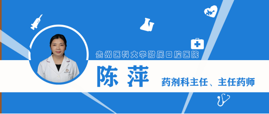 陈萍 主任药师,西药执业药师,药剂科主任。中华口腔医学会口腔药学专委会常委,贵州省药学会安全与合理用药专委会委员,贵州省药学会临床药学专委会委员,贵州省医院协会药事管理专委会委员。