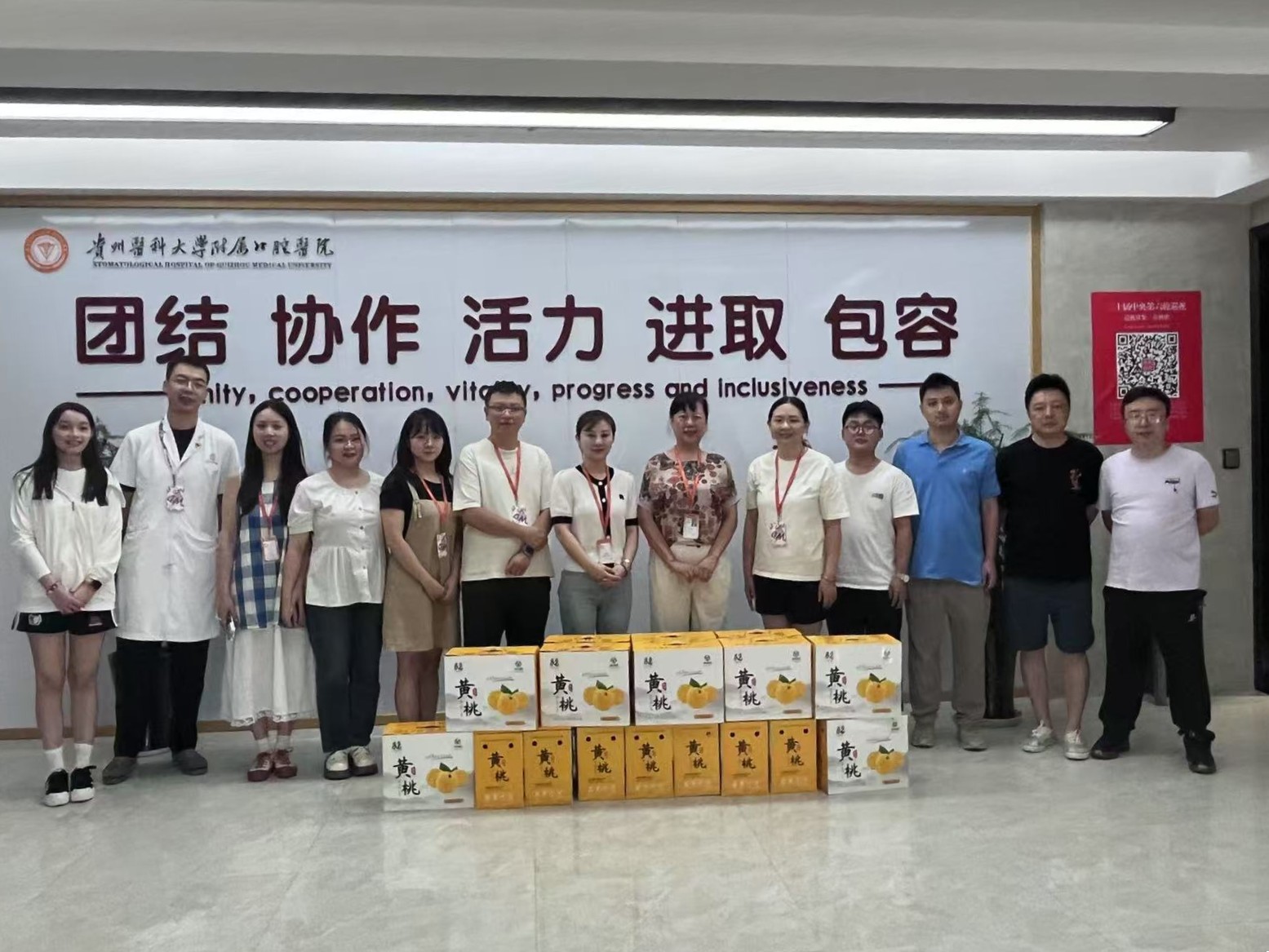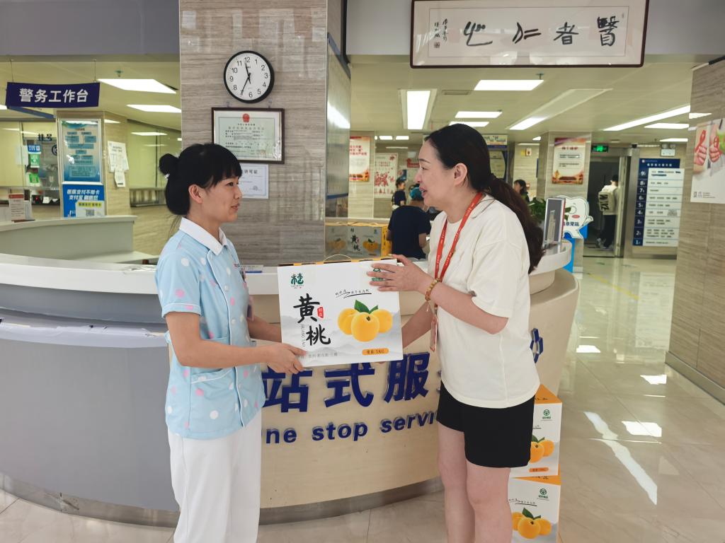 此次慰问活动涵盖了北京路院区、观山湖院区及深圳分院。工会精心为职工们准备了来自三穗县的助农产品黄桃,以及职工食堂的消暑饮品。“送清凉小分队”将慰问品送到职工手中,反复叮嘱大家:“高温天气要注意防暑,合理安排作息,确保工作安全有序。”
