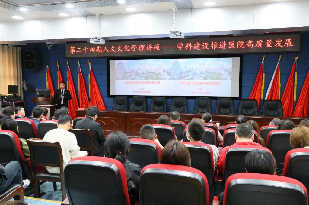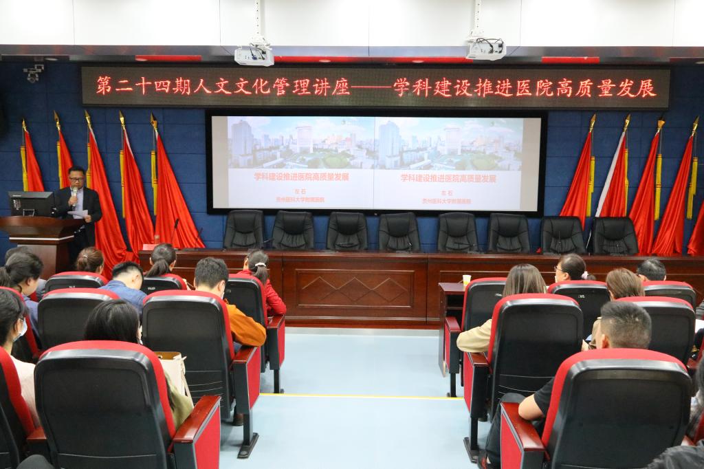 “十四五”建设发展规划,4月25日,口腔医(学)院在行政楼学术报告厅举办了第二十四期人文文化管理讲座。此次讲座以“学科建设推进医院高质量发展”为题,由贵州医科大学附属医院党委委员、副院长左石主讲,院党委副书记、院长马洪主持讲座。