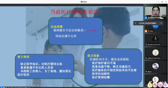 医患沟通是临床实践的核心,有效的医患沟通是实现高质量医疗的关键。为进一步加强口腔医学生临床实习的沟通能力,11月26日,附属口腔医院综合急诊科陈娇为2017级、2018级以及2019级学生开展了以“口腔医患沟通技巧”为主题的讲座,讲座采取腾讯会议的方式进行,由小艾电竞