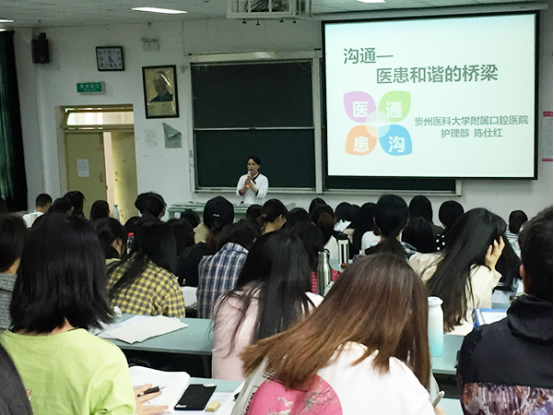 于4月29日下午在北校区3202教室开展了班主任讲师团系列讲座——医患和谐的桥梁。讲座由护理部陈仕红老师主讲,2016级口腔医学班同学参加。