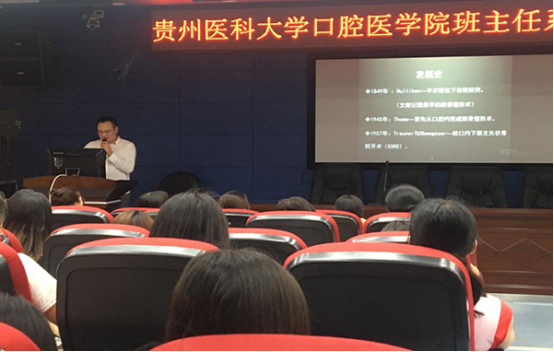 于4月28日下午,在行政楼五楼学术报告厅开展了班主任讲师团系列讲座——正颌外科。该讲座由颌面外科的陈友利医生主讲,2016级口腔医学甲、乙班共120人参加。