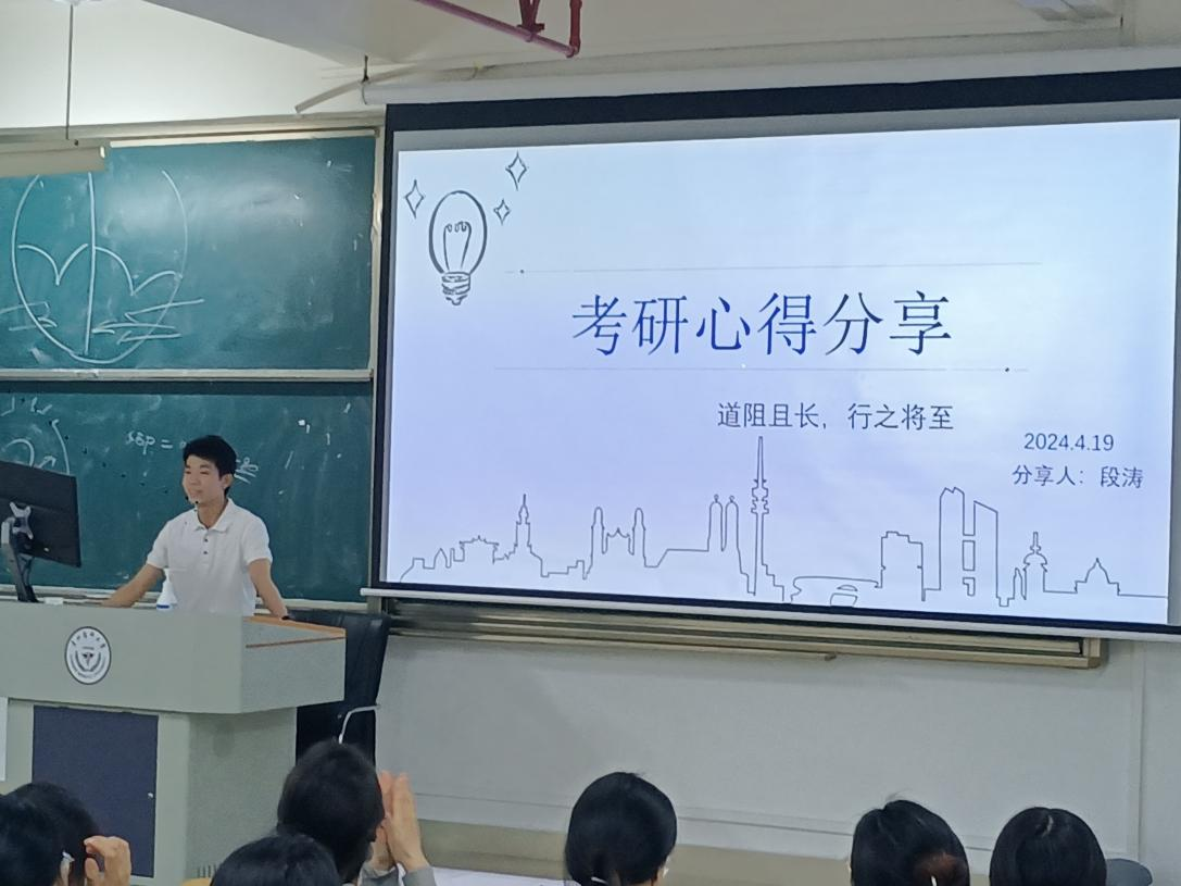 4月19日,段涛为即将考研的2020级同学详细讲解了各科的复习经验,强调要有效率、有规划的复习,并推荐了资料、分享了心得、给出了实用的应试策略和建议。