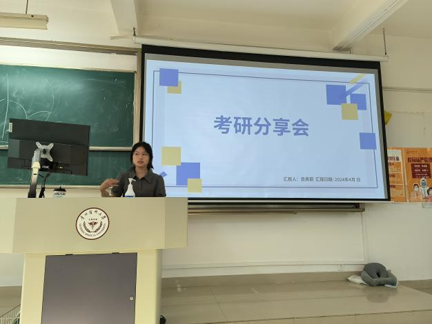 同日,岳美丽在贵州医科大学云漫湖校区4401教室为2021级口腔医学学生进行备考经验分享。