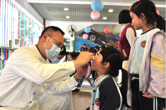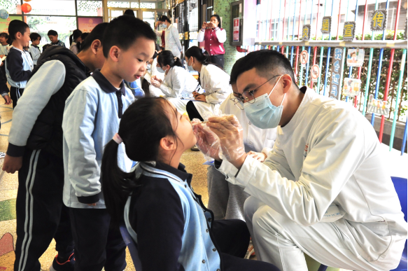 团队还现场为百余名小朋友进行了口腔检查,针对小朋友存在的口腔问题提供一对一指导,并填写检查表给出诊疗建议。