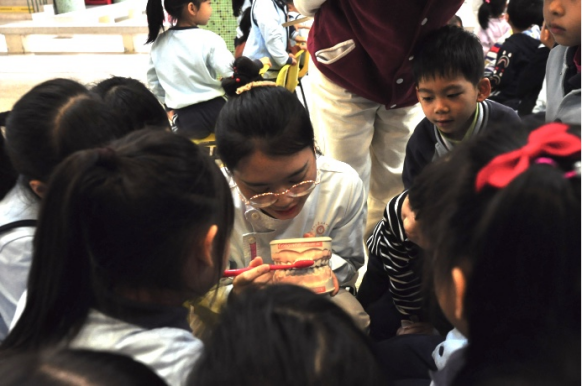 随后,深圳分院医生团队分别走入小朋友们落座区域,利用牙模道具手把手指导大家刷牙,让大家在愉悦欢乐的氛围中,掌握正确的刷牙方式。