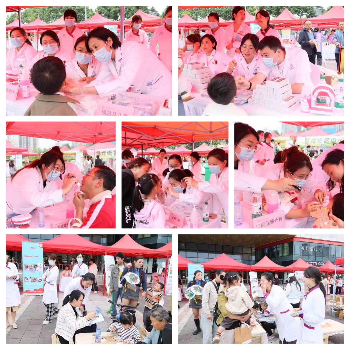 预防及儿童口腔科、正畸一科、正畸二科、口腔颌面外科、口腔修复种植科、牙周黏膜科、牙体牙髓科、口腔急诊综合科组成的专家团队通过口腔义诊和健康科普等形式全方位满足家庭需求,医护人员携带专业设备为儿童提供免费的口腔检查,针对龋齿、牙列不齐等常见问题提出个性化防治建议;通过模型演示指导家长掌握科学的刷牙方法,并就托育阶段口腔疾病防治等家长关切的问题答疑解惑。