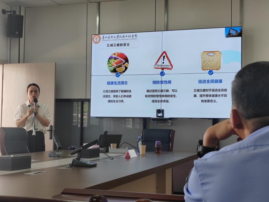 口腔预防科科长陈仕红以“口腔健康 全身健康——减糖控体重 护牙促健康”为题进行专题讲座,结合临床案例,系统阐述了龋齿、牙周炎等常见口腔疾病对全身健康的危害。她指出,口腔作为人体消化道的重要门户,其健康状况与整体健康密切相关,口腔中的细菌感染若未得到有效控制,可能波及心血管及消化系统,甚至增加糖尿病、心脏病等全身性疾病的患病风险。围绕“减糖控体重,护牙促健康”这一核心主题,陈仕红深入剖析了高糖饮食在导致龋齿发生和体重增加中的双重作用机制,并针对如何有效维护口腔及全身健康提出了可行性建议。