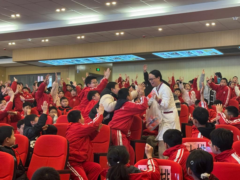 医生陈友利、杨春先和郑永围绕牙齿的结构和功能、正确的刷牙方法、如何预防龋齿等内容进行了深入浅出的讲解,用通俗易懂的语言和互动的教学方式让孩子们在轻松愉快的氛围中学习到了实用的口腔保健知识。提问抢答环节,孩子们纷纷踊跃举手抢答并送上小礼品,现场气氛热烈。