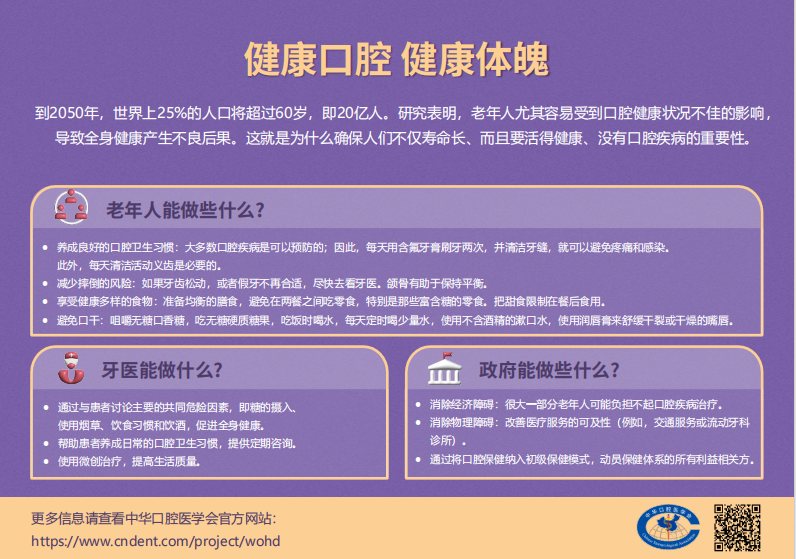 2024年“世界口腔健康日”核心信息卡——提高人们对如何保持健康至老年的认识