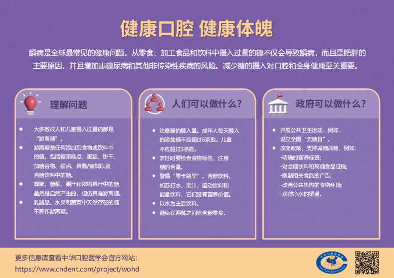 2024年“世界口腔健康日”核心信息卡——提高对由糖摄入引起的健康风险的认识