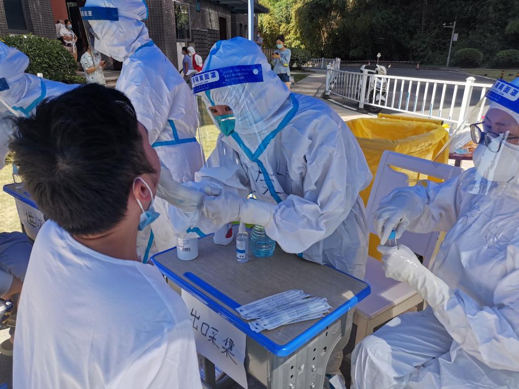 医护人员、后勤工作人员主动奉献,在抗疫一线统筹指挥,确保两个院区核酸采集工作有序开展。
