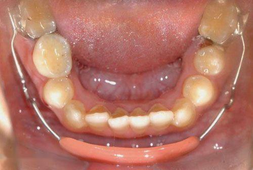 矫治方法:前牙反合的患儿往往伴有咬上唇、伸下巴、口呼吸等不良习惯。因此,应首先纠正其不良习惯。口呼吸习惯应进行耳鼻喉科会诊处理,检查其是否伴有鼻咽部疾病,排除鼻咽部疾病后,再进行纠正。对于乳牙列,常用的矫治器为合垫舌簧矫治器;对于混合牙列,常用的矫治器为前方牵引矫治器和FRⅢ矫治器。