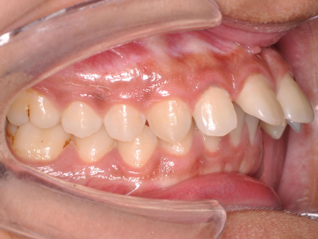 前牙深覆合是指上前牙覆盖下前牙唇面超过1/3,深覆盖是指上前牙的唇面与下前牙唇面之间的水平距离超过3mm,常常伴有下颌后缩,侧貌呈现凸面型。