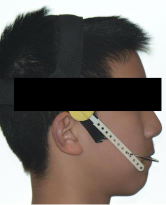 矫治方法:前牙深覆合深覆盖的患儿常常伴有吮指,咬下唇,口呼吸等不良习惯,同样,应首先纠正其不良习惯,必要时可在其手指上涂抹苦瓜汁或是辅助矫治装置如唇挡丝、前庭盾等。同时早期可进行肌功能训练,如上唇肌张力训练。口呼吸习惯应进行耳鼻喉科会诊处理,检查其是否伴有鼻咽部疾病,排除鼻咽部疾病后,再使用前庭盾、闭口贴等纠正。针对功能性的因素,常用的矫治器为肌激动器,TB、FRⅡ。针对骨性的因素,常用的矫治器为头帽-肌激动器。