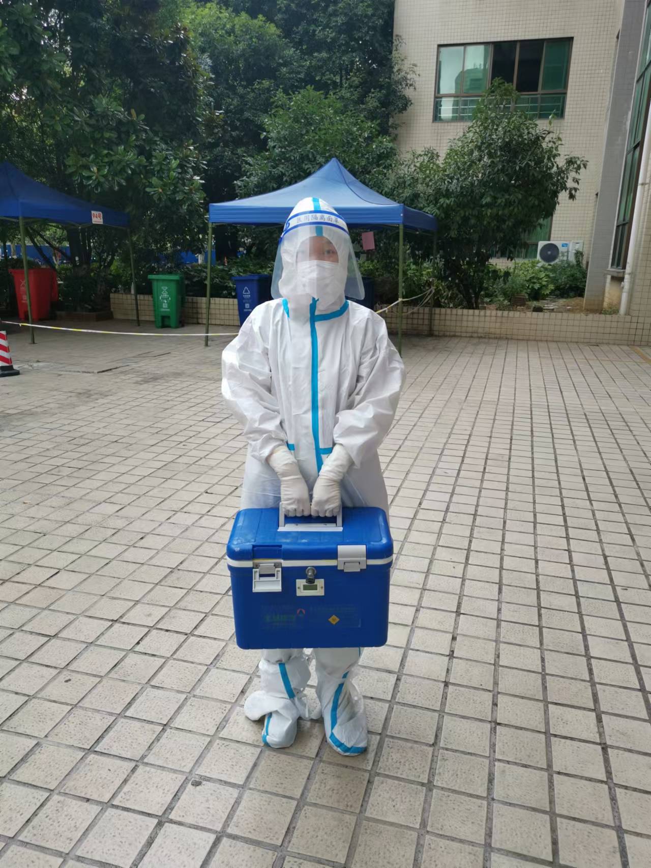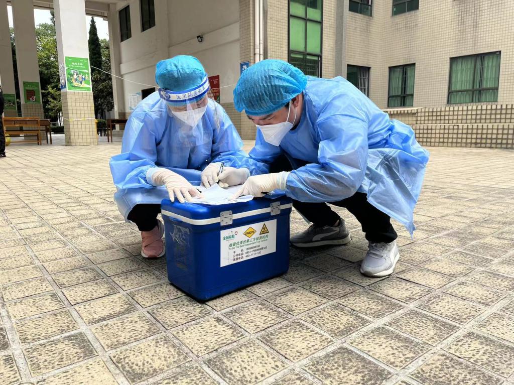 护理老师将采集的核酸样本转运送检