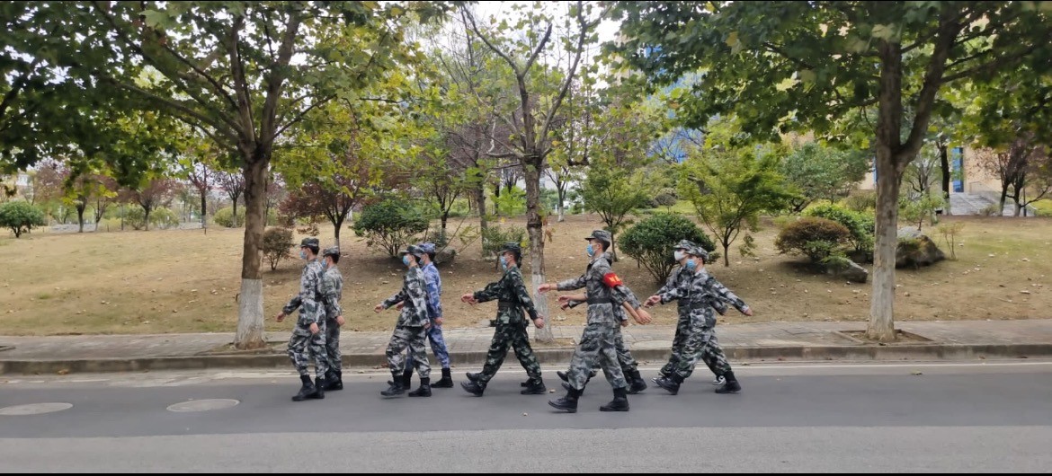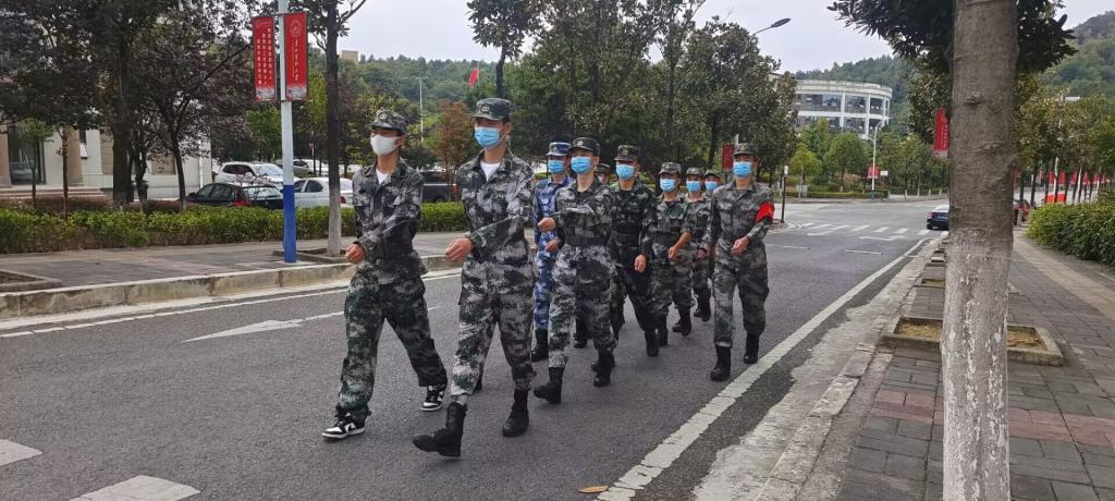 “齐步走,一二一.......立定”;“同学,现在正处于疫情防控阶段,请佩戴好口罩,返回宿舍”。那些绿色的迷彩,在贵医的校园中划出了一道道靓丽风景线,每当他们走过宿舍的同学都拿起手机记录下这道风景,这就是贵医防疫“巡逻小分队”。他们走在校园就是一道不可多得风景,他们和“大白”一样走在防疫前线,守卫着贵医,他们步伐铿锵有力,暗示着防疫必胜的决心。
