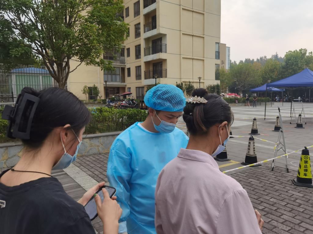 工作人员携带物资到校区外为学生采集核酸