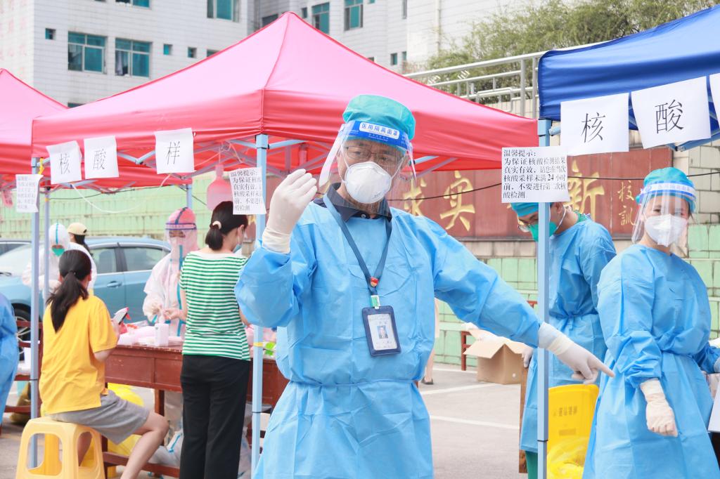 医院感染管理科负责人陈锐在新校区开展核酸检测复核工作