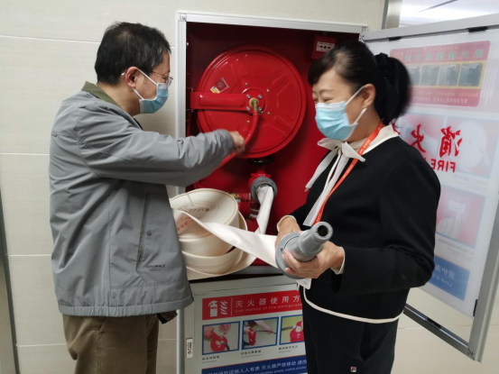 在北校区进行消防技能培训,党委副书记何雨羲、纪委书记郑慧颖出席培训,医技科室全体职工、安保人员、保洁人员和新进的医护行政人员、教师、实习生、规培生、研究生参加演练。