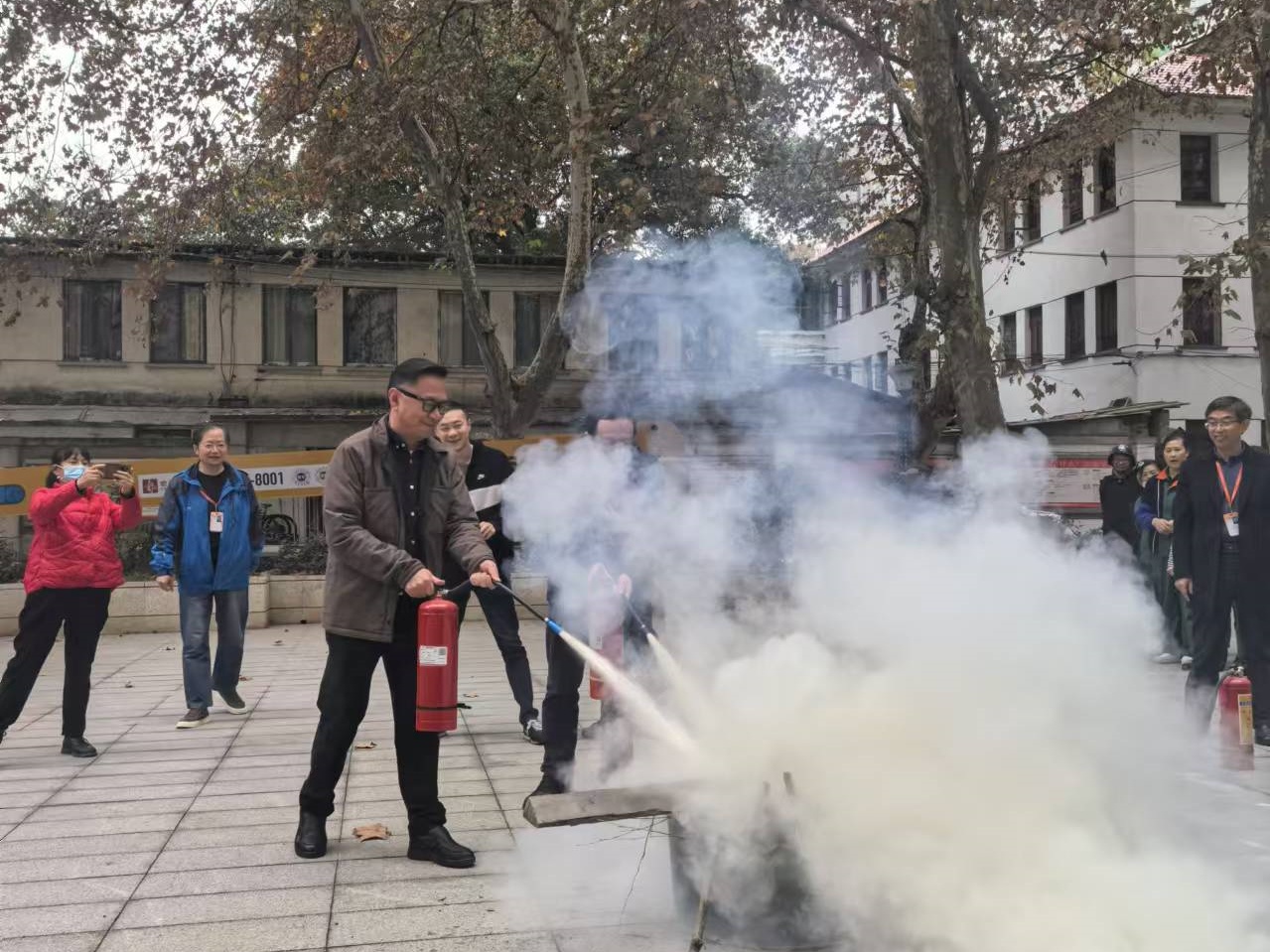 于11月21开展了冬季消防演练。院党政领导班子出席活动,全院职工和学生参加活动。