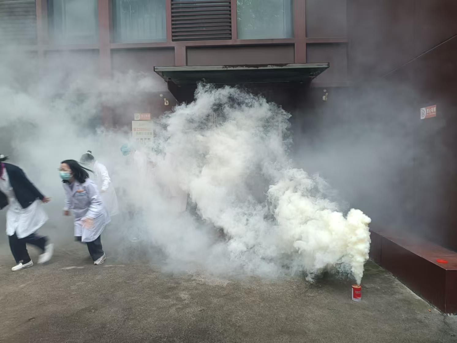 演练围绕消防安全知识宣传、前期风险排查、紧急疏散和灭火器操作演练等方面展开。在安保人员的指导下,医护员工、规培生、实习生等迅速响应,按照预定路线弯腰、猫步、捂住口鼻,有序撤离至医院外部的安全地带。各科室负责人随即清点人数并层层上报,确保人员安全无虞。
