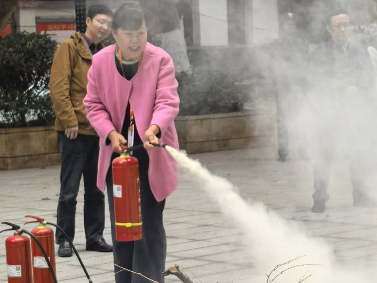 最后,专业人员对消防安全知识、灭火器使用流程及应急演练程序和要求进行了详细讲解,并组织参演人员进行了灭火器实战演练。