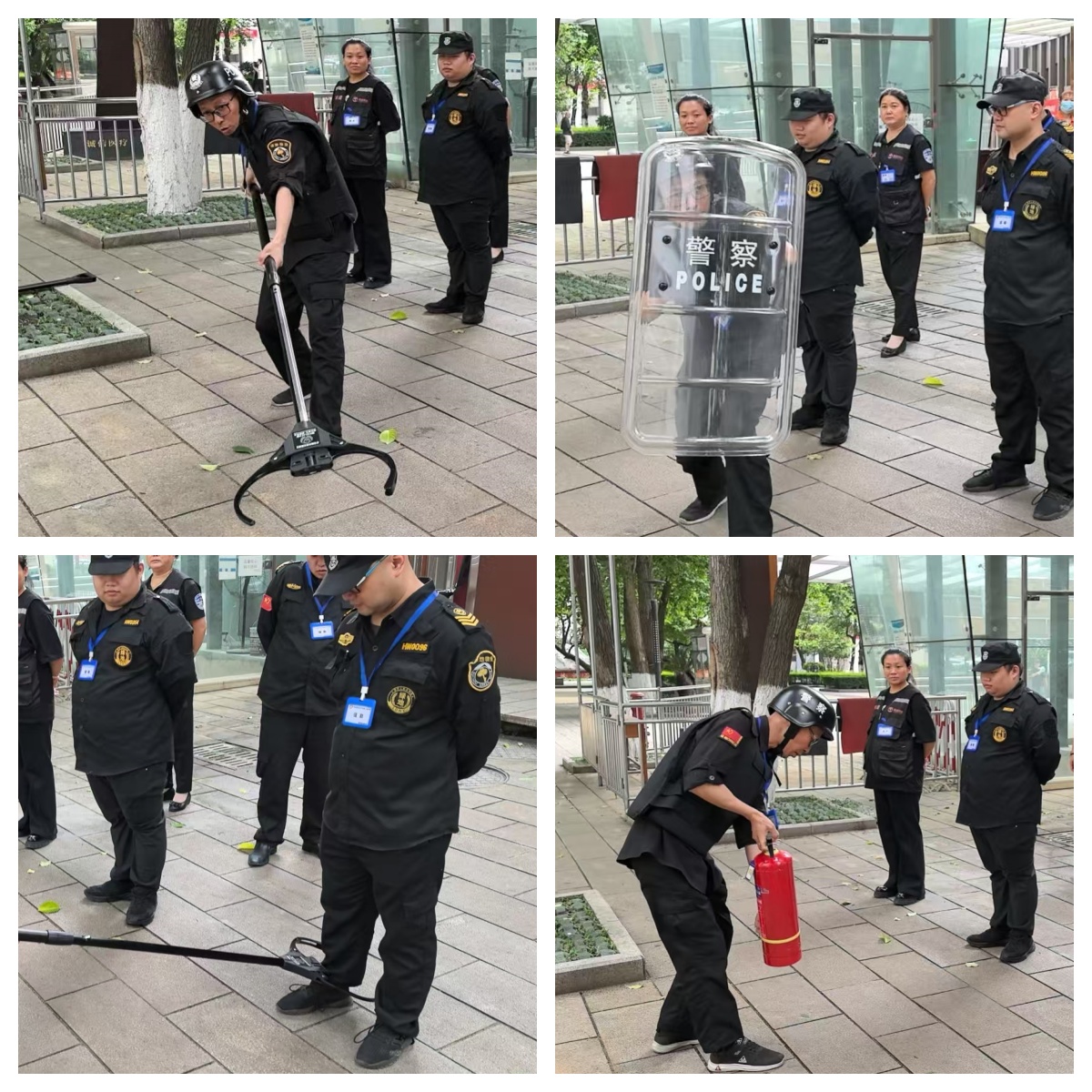 演练过程中,安保人员练习使用防暴盾牌、钢叉等工具,并进一步熟悉和掌握消防器械的使用方法。整个演练过程紧张有序,各环节衔接流畅,参与人员反应迅速、协作默契,达到了预期的演练效果。