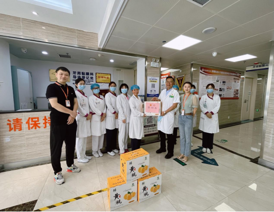 盛夏时节,骄阳似火,医院迎来了就诊高峰,全院职工任劳任怨,兢兢业业,坚守在各自的工作岗位上。为感谢大家的辛勤付出,近日,医院采购三穗县助农帮销产品黄桃作为慰问品,由党委副书记、院长马洪,党委副书记何雨羲带队到北京路院区及观山湖院区临床一线,慰问坚守岗位的医护人员,为他们送去夏日的清凉与关怀。