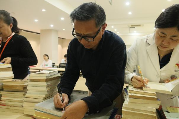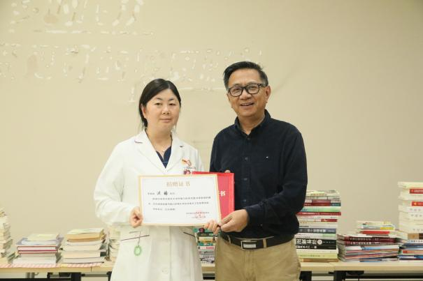 为弘扬与赞美捐赠人的奉献精神及知识共享精神,图书室还邀请捐赠人为其捐赠的书籍粘贴标签。揭牌仪式后,图书室正式向全院教职医护员工生开放!