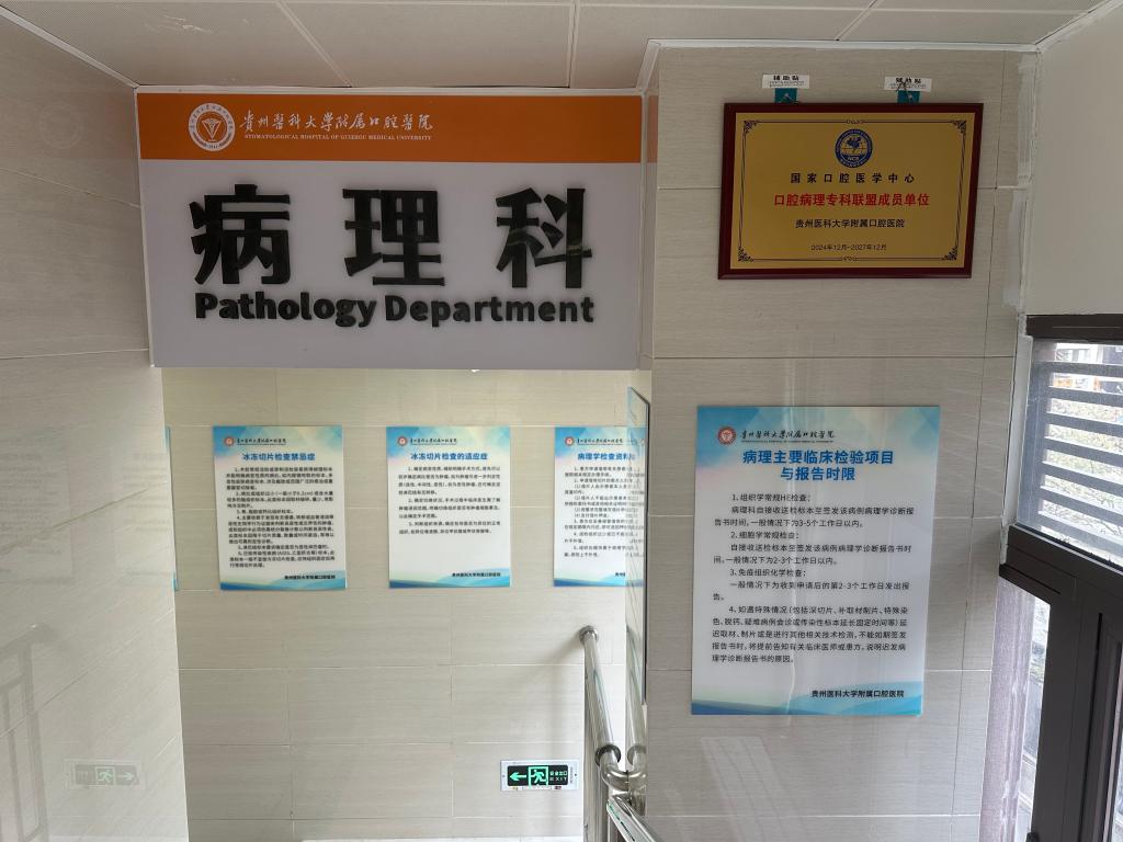 病理科是贵州省口腔专科医院病理设备配备最为齐全的科室,集临床、教学、科研为一体,是中华口腔医学会口腔病理学专委会委员单位,是国家口腔医学中心口腔病理专科联盟成员单位。现科室共有4人,其中博士学位1人,硕士学位2人,学士学位1人。胡赟为科室主任。